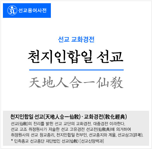 민족종교 선교|선교용어사전|선교 교화경전(仙敎敎化經典) 『천지인합일 선교(天地人合一仙敎)』